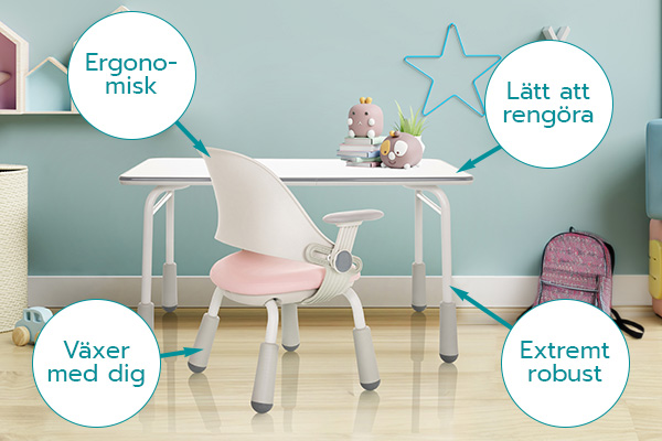 - Växer med barnet tack vare höjdjusterbara bordsben