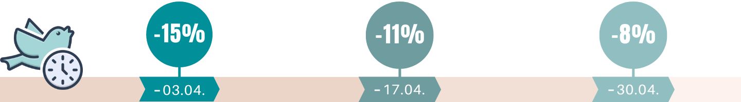 Early Bird-rabatt: Det lönar sig att vara snabb, rabatten* minskar!