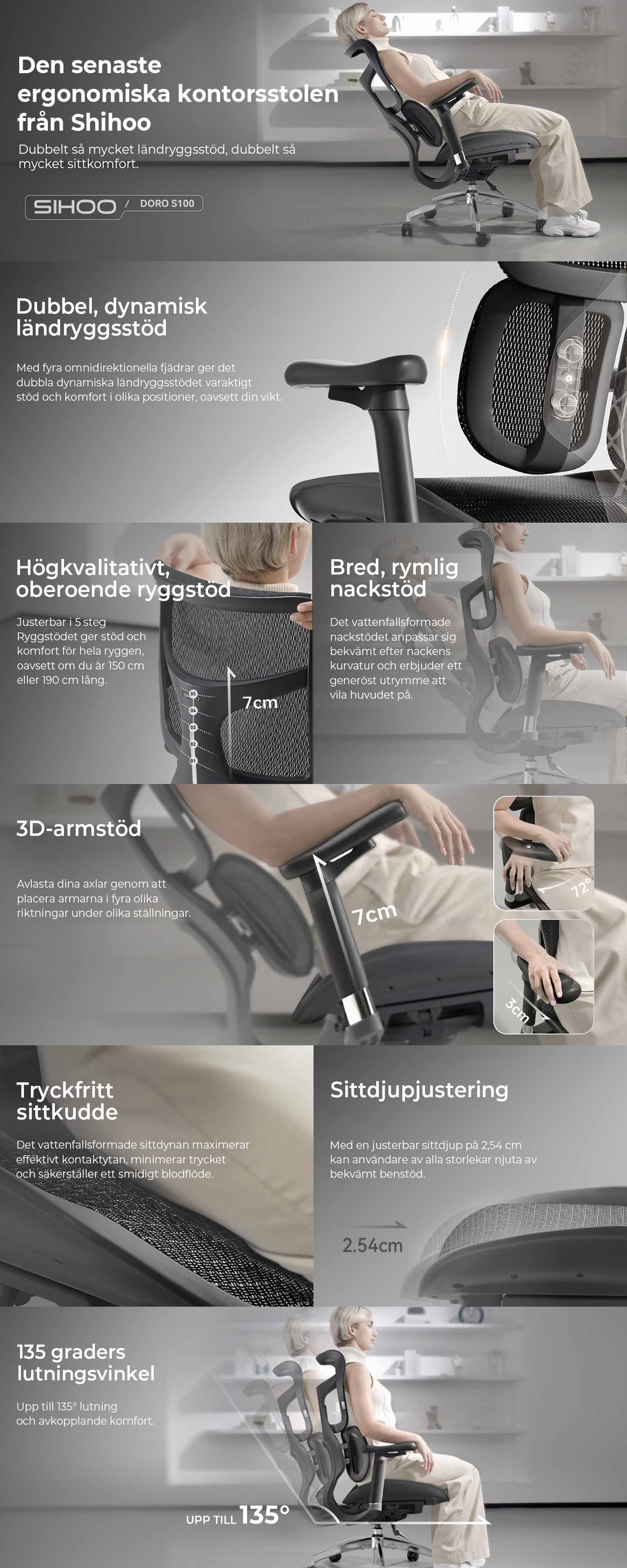 - Uppfyller EN 1335 typ A – uppfyller högsta ergonomiska krav. Typgodkänd enligt EN 1335-1:2020+A1:2022 & EN 1335-2:2018.